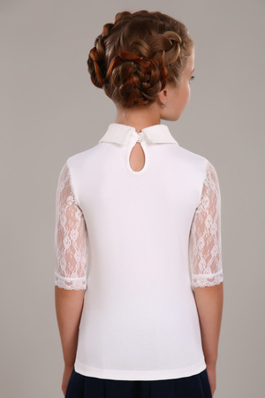 Элегантная и нарядная блузка для вашей маленькой принцессы! Нежная трикотажная блуза для девочки с кружевныйми рукавами 3/4 - замечательный выбор для 1 сентября. Ведь осень уже за углом и модная праздничная школьная форма для детей - это то, что совсем скоро понадобится каждому школьнику. Стильная кружевная кофта - лонгслив от бренда JerseyLab - это эластичный хлопок, нежный трикотаж, который прекрасно дышит и не вызовет аллергию, идеальный вариант для школы для детей и подростков. Классическая базовая однотонная школьная блузка полуприлегающего силуэта представлена в однотонных цветах в широкой сетке маленьких, средних и больших размеров.