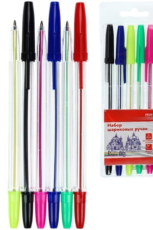 Набор шариковых ручек обеспечивают лёгкое и мягкое письмо. Быстро высыхающие чернила не размазываются и имеют насыщенные цвета. Прозрачный корпус. В составе набора 6 цветов чернил.
