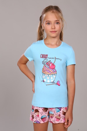 Комфортная пижама для девочки с ярким модным принтом "Кексы". Пижама детская состоит из футболки и шорт. Дизайн ткани позволяет использовать пижаму не только для сна, но и как костюм для дома. Материал очень мягкий и в то же время износостойкий, не скатывается и не вытягивается. Модель пижамы не сковывает движения ребенка во время сна. Покрой футболки свободный, шорты классические без карманов. Пижама выполнена из 100% гипоаллергенного хлопка, что позволяет коже ребенка дышать во время сна.