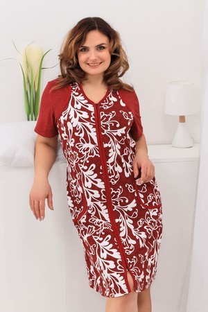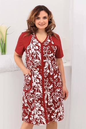Халат женский на молнии. Перед с фигурной кокеткой, рукав короткий, в боковых швах два полупояса, два накладных кармана. Идеально подойдёт на любую фигуру, яркая расцветка, ткань 100% хлопок.
