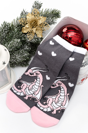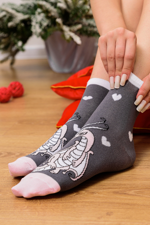 Женские новогодние носки с оригинальной принтом. Отличный сувенир или подарок без повода. В упаковке 1 пара. расцветки на выбор