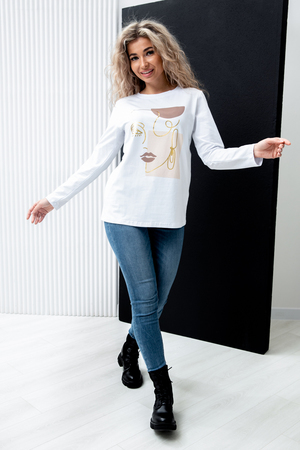 •Универсальность: Этот лонгслив легко сочетается как с джинсами для повседневного образа, так и с юбками или шортами для более нарядного варианта.
