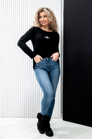 •Универсальность: Этот лонгслив легко сочетается как с джинсами для повседневного образа, так и с юбками или шортами для более нарядного варианта.