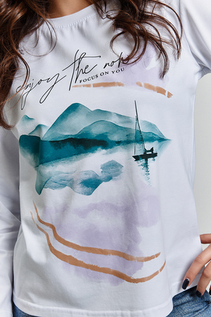 Покупатель на Ozon05.12.2025 в 20:55Брала с одуванчиками, теперь с городом.очень приятный, мягкий лонгслив для тела, красивый принт