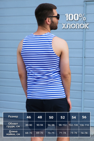 1. Описание: Мужская майка-тельняшка из ткани кулир с лайкрой, которая почти невесома и при этом очень эластична.