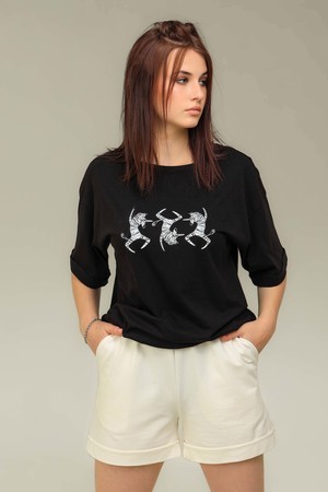 Стильный и комфортный женский костюм от бренда Emotion Day. Комплект одежды предназначен, как для повседневного, так и для спортивного стиля. Можно использовать, как домашний костюм. Свободный крой изделия способствует легкости и свободе движения. Шорты с футболкой выполненные из мягкого хлопка с добавлением эластана будут максимально комфортными и удобными в носке. Уникальный принт служит изюминкой этой модели.