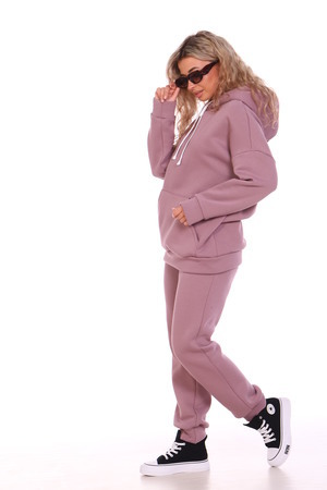 Ультрамодный костюм из качественного турецкого футера с начесом. В комплект входит толстовка и брюки. Толстовка свободного кроя с капюшоном и накладным карманом, брюки на резинке и с манжетами внизу брючин. В этом костюме вам будет необыкновенно тепло и уютно.