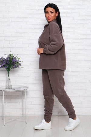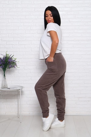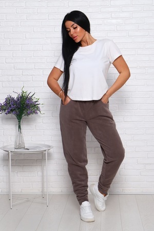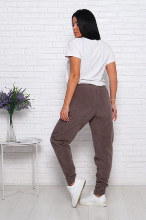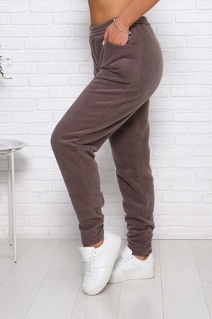 Брюки женские модель "бананы" зауженные к низу, удобные боковые карманы, пояс притачной на резинке. Флис обеспечивает комфорт и тепло, богатая фактура флиса обеспечивает презентабельный вид. Брюки можно носить в комплектации с толстовкой - артикул 57111.