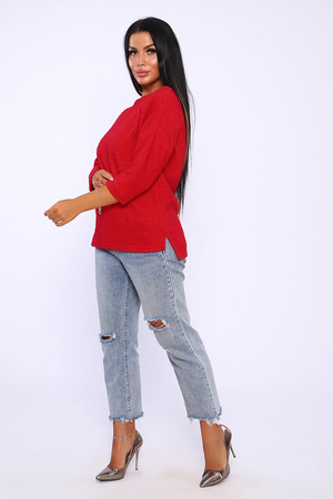Джемпер женский из мягкого, приятного к телу вязаного трикотажа. Горловина в виде лодочки обработана обтачкой , спущенная пройма , рукав на манжете длиной 3/4. Низ спинки удлинён, по бокам небольшие разрезы. Оригинальная вязка делает джемпер незаменимой вещью в гардеробе женщины, предпочитающей комфорт и удобство. Благодаря мягкому переплетению нитей толстовку можно одеть как самостоятельно, так и под верхнюю одежду. Универсальный крой джемпера позволит вписать его как в офисный гардероб, так и в повседневный образ. Современная палитра цветов и широкий размерный ряд позволит подобрать модель под любое ваше настроение.