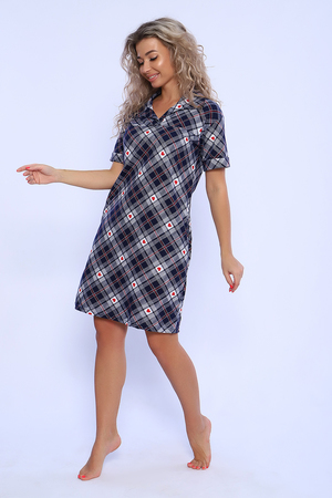 Туника полуприлегающего силуэта с короткими рукавами на манжетах и рубашечным воротником. Карманы в боковых швах. Неотъемлемый элемент домашнего гардероба.