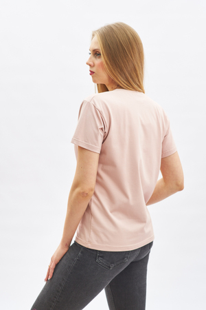 Футболка для женщин прямого силуэта с округлой горловиной. Рукав втачной, короткий. Полочка изделия украшена модным принтом.