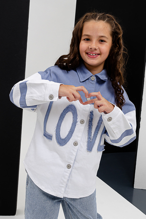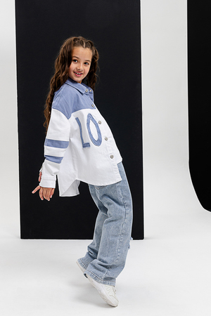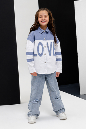 Отличная рубашка для девочек. Рубашка выполнена из ткани джинс 100% хлопка - хороший износостойкий материал.