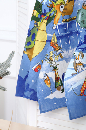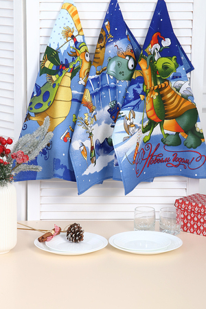 Набор из трех кухонных полотенец размером 48*60 см выполнен из хлопчатобумажного вафельного полотна. Вафельное полотно хорошо впитывает влагу, не деформируется, не линяет. Полотенца с символикой нового 2024 года украсят вашу кухню и и станут приятным подарком для близких в преддверии любимого праздника.
