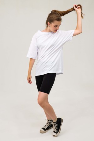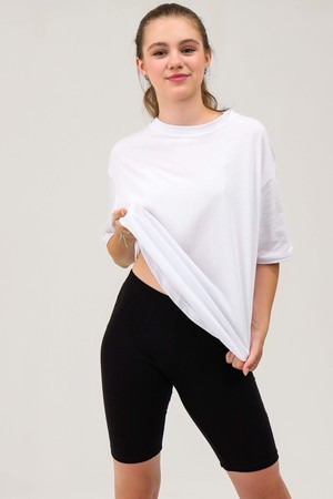 Костюм для спорта , дома и отдыха. Состоит из объёмной длиной футболки - оверсайз с широкими рукавами и удлинёых велосипедок. Велосипедки из натурального хлопка с лайкрой на широкой резинке, не сдавливают, удобно прилегают. Длина рукава указана от основания шеи. В измерениях велосипедок указаны стандартные размеры фигуры. До этих значений велосипедки растягиваются без проблем. В измерениях обхвата талии указана длина резинки. Продуманный крой костюма позволяет свободно двигаться и обеспечивает комфорт в движении.
