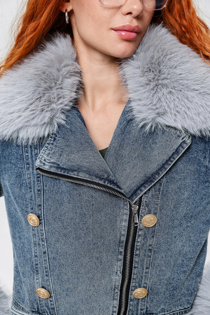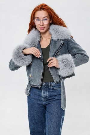 Женская укороченная куртка, сезон весна-осень. Мех отстегивается и куртка превращается в утепленную джинсовку. Отличное решение на межсезонье. Внутри подкладка.