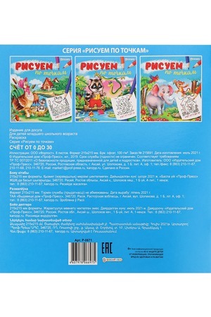 Соединяя точки по цифрам от 0 до 30, получится картинка, которую потом можно раскрасить. Полноцветная печать. Формат: А5, 8 листов. Мелованная обложка, внутренний блок: офсет. Крепление: скрепка. Размер: 215х215 мм.
