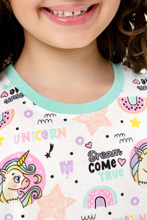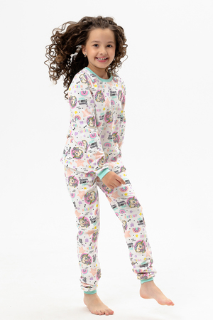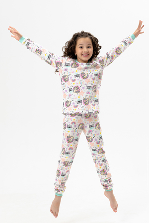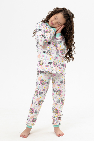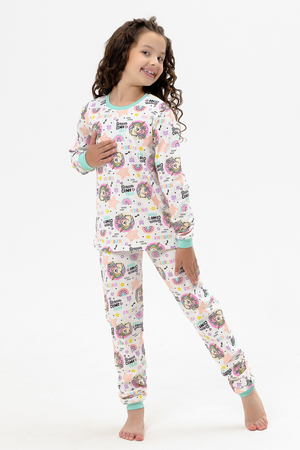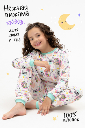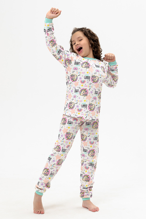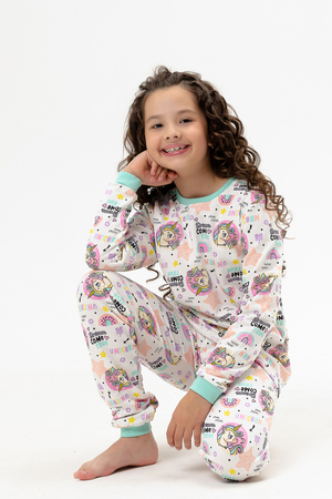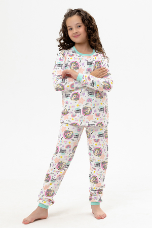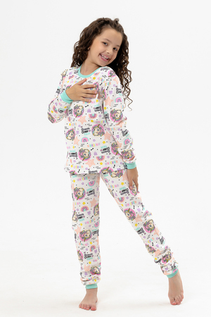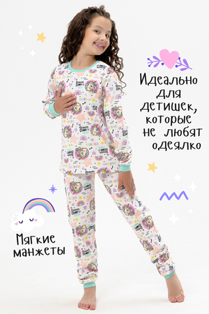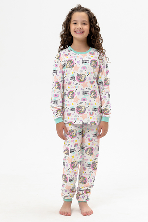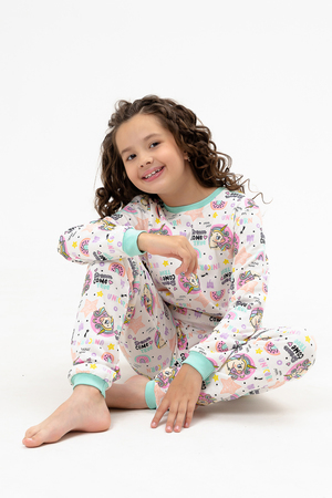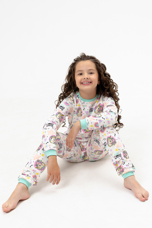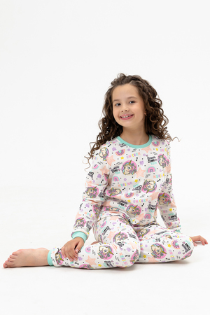 Детская пижама с оригинальным принтом в спокойный, пастельных тонах для юных модниц