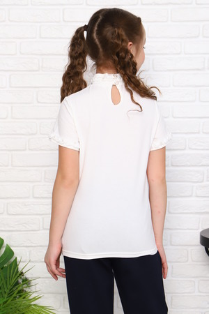 Базовая школьная блузка для девочек с коротким рукавом. Нарядная блузка станет основой как повседневного, так и праздничного образа. Мягкое кружево по воротнику - стойке и низу рукава придает модели нежности. Модель составит одинаково удачный комплект и с юбкой, и с брюками. Блузка сшита из качественного трикотажа, используемый материал не теряет форму после многократных стирок, мягкий и приятный к телу, устойчив к износу. Для сохранения первоначальных свойств изделия, важно соблюдать рекомендации по уходу.