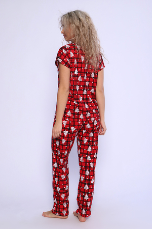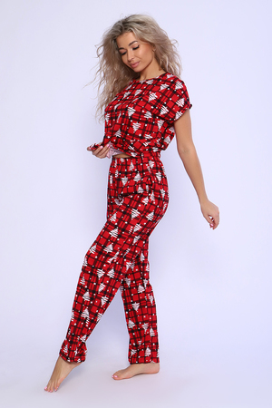 Костюм состоит из футболки и брюк. Футболка свободная со спущенным плечом. Брюки прямые с карманами по бокам.