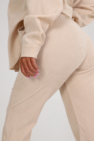 Брюки в данном костюме оснащены эластичной резинкой, что обеспечивает комфорт и идеальную посадку на любую фигуру. Изготовлены они из высококачественного велюра, который приятен на ощупь и обеспечивает долговечность изделия.
