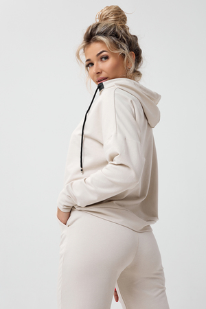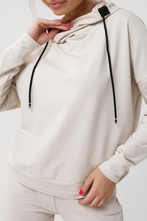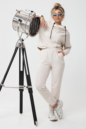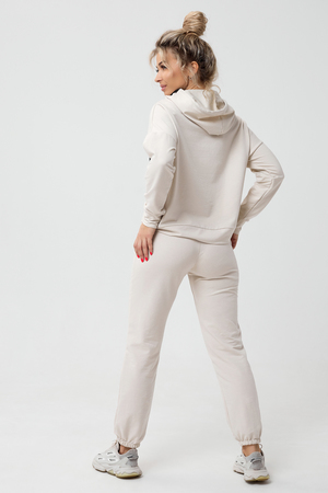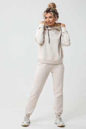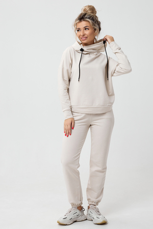 Молодежный костюм из футера 2-х нитки. Худи с длинным рукавом и с капюшоном. Брюки - джоггеры с резинкой на ногах, по бокам внутренние карманы, пояс на резинке. Очень стильный и необычный капюшон.