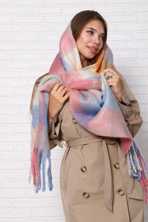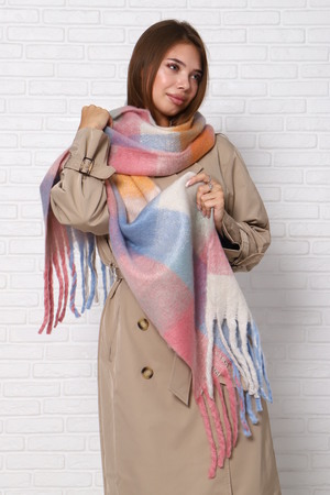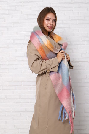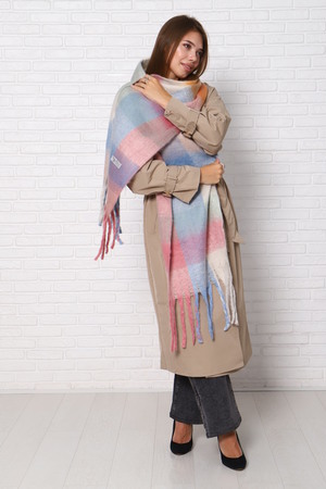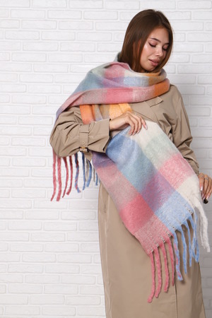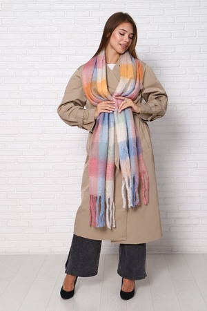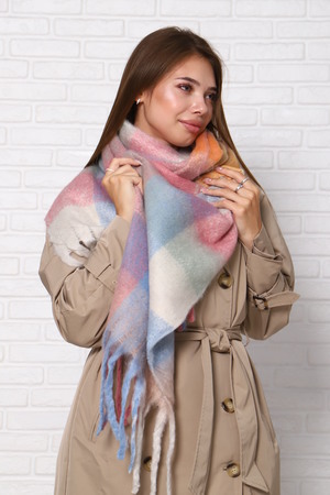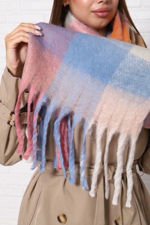 Шарф женский зимний выполнен в модных стильных расцветках, имеет двухсторонний не выходящий из моды принт клетка, будет отлично сочетаться с вашими пуховиками, куртками или пальто. Размеры шарфа 240 на 40 см, по краям бахрома.