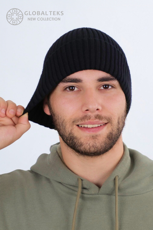 Шапка мягкая и теплая, идеально подходит для осенне - зимнего периода. Демисезонная модель, обеспечивающая комфорт при разных погодных условиях. Украшена стильным отворотом. Материал имеет вязаную рубчиковую фактуру.