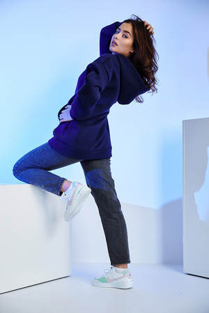 Уютное худи свободного кроя с объемным капюшоном, спущенным плечом и удобным карманом кенгуру. Оверсайз крой не сковывает движений, изделие хорошо держит форму. Толстовка из трикотажного футера с мягким начесом очень теплая и приятная к телу. Худи одинаково стильно будет смотреться на разных типах фигуры. Красивые насыщенные цвета и минималистичный дизайн сделают эту базовую вещь самой любимой в вашем гардеробе.Худи эффектно смотрится с любыми джинсами: укороченными и широкими, клеш и бойфредами.