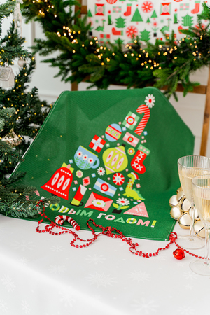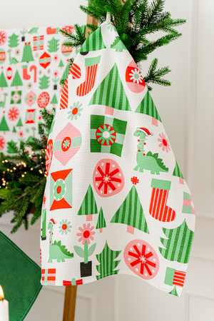 Рождественские полотенца «Новогодняя Мозаика» не оставят равнодушным никого! Они отлично поднимают настроение, создают ощущение волшебства и новогоднего чуда. Такие кухонные полотенца будут радовать вас всю зиму не только своим новогодним рисунком, но и прекрасной прочностью и износоустойчивостью. Вафельные полотенца из 100% хлопка быстро сохнут, прекрасно впитывают влагу и не оставляют ворсинок на поверхности. Набор кухонных полотенец станет отличным подарком на Новый год и Рождество.