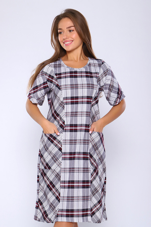 Туника полуприлегающего силуэта с короткими рукавами на манжетах. Полочка с рельефами и двумя накладными карманами. Неотъемлемый элемент домашнего гардероба.