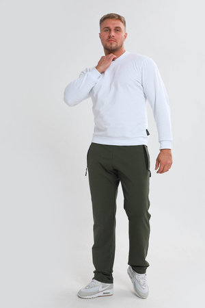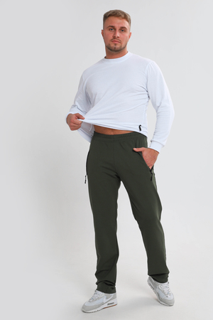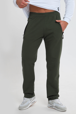 Мужские спортивные брюки прямого кроя, пояс на резинке - средняя посадка. Два боковых кармана на молнии с вставкой из плащевки. Материал держит форму, не скатывается. Подойдут для повседневной носки, для занятий спортом.
