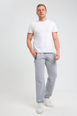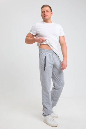 Мужские спортивные брюки прямого кроя, пояс на резинке - средняя посадка. Два боковых кармана на молнии с вставкой из плащевки. Материал держит форму, не скатывается. Подойдут для повседневной носки, для занятий спортом.
