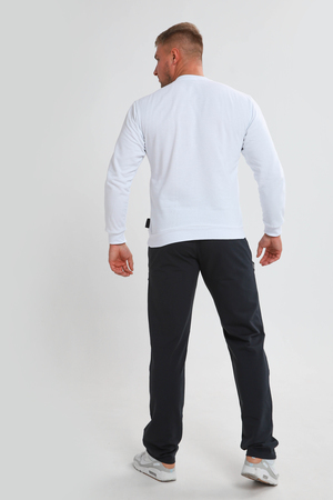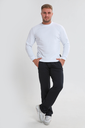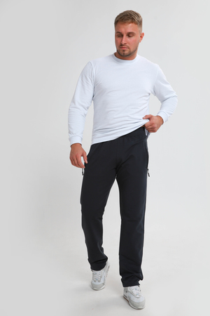 Мужские спортивные брюки прямого кроя, пояс на резинке - средняя посадка. Два боковых кармана на молнии с вставкой из плащевки. Материал держит форму, не скатывается. Подойдут для повседневной носки, для занятий спортом.