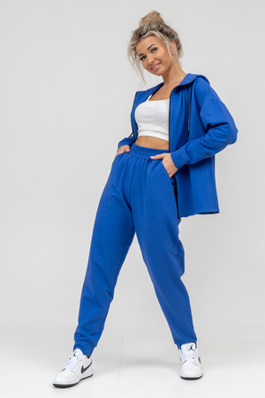 Женский костюм выполнен из футера 2-х нитки высокого качества с хлопком и небольшим добавлением полиэстера и лайкры, что позволяет изделию не скатываться и оставлять идеальный внешний вид на долгое время. Костюм состоит из толстовки и брюк. Толстовка прямая, на молнии, с двойным капюшоном - стойкой и двумя накладными вместительными карманами. Манжеты брюк и толстовки выполнены из основного материала, а пояс на специализированной поясной машине, что делает швы крепкими, ровными и качественными. Костюм такого плана представлен в широкой размерной сетке, что позволяет выбрать его как девушке, так и женщине. Однотонный костюм модных расцветок будет удачным выбором для поездок в отпуск, на пикник, для школы, для активного отдыха и прогулок по городу. Костюм с брюками - это настоящая находка для тех, кто ценит свою индивидуальность.