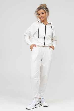 Женский костюм выполнен из футера 2-х нитки высокого качества с хлопком и небольшим добавлением полиэстера и лайкры, что позволяет изделию не скатываться и оставлять идеальный внешний вид на долгое время. Костюм состоит из толстовки и брюк. Толстовка прямая, на молнии, с двойным капюшоном - стойкой и двумя накладными вместительными карманами. Манжеты брюк и толстовки выполнены из основного материала, а пояс на специализированной поясной машине, что делает швы крепкими, ровными и качественными. Костюм такого плана представлен в широкой размерной сетке, что позволяет выбрать его как девушке, так и женщине. Однотонный костюм модных расцветок будет удачным выбором для поездок в отпуск, на пикник, для школы, для активного отдыха и прогулок по городу. Костюм с брюками - это настоящая находка для тех, кто ценит свою индивидуальность.