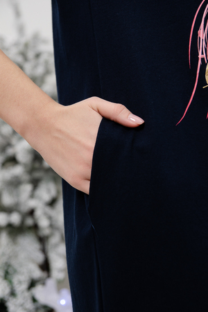 Туника прямого силуэта, длиной выше колена, с округлой горловиной, с карманами в боковых швах. Рукав длиной 3/4. С разрезами в нижней части боковых швов. Горловина обработана обтачкой из основного полотна.