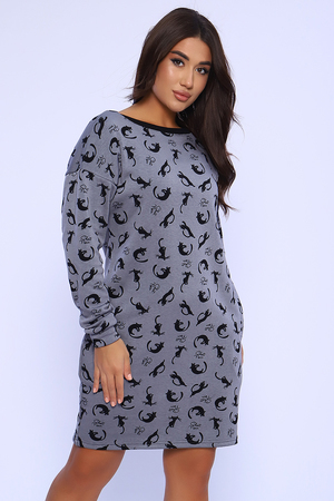 Туника женская из вязаного трикотажа на меху. Горловина в виде лодочки обработана эластичной кашкорсе, спущенная пройма, длинный рукав на манжете, в боковых швах удобные карманы. Туника с оригинальным принтом - ультрамодное решение для весенней, осенней и зимней погоды. Благодаря своей мягкой текстуре изделие приятное на ощупь, подарит ощущение уюта и комфорта. Отличная модель для офиса, прогулок и отдыха.