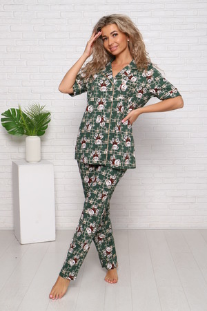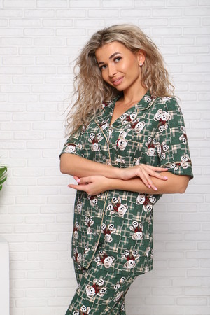 Женская пижама состоящая из 100% хлопка,который позволит вашей коже дышать благодаря мягкой трикотажной ткани.Домашний комплект состоит из рубашки и брюк,подойдет под все типы фигур и телосложений.Благодаря своему свободному крою пижама не стеснит движений и позволит почувствовать себя комфортно.Костюм для дома который добавит уют в вашу повседневную жизнь.