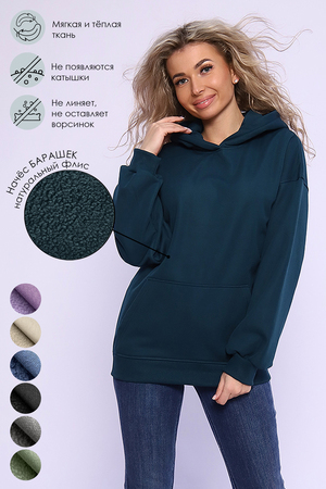 Теплое женское худи-толстовка свободного кроя со спущенным плечом и объемным капюшоном. Выполнена из высококачественного трикотажного полотна - интерсофт (футер-трехнитка) с изнаночной стороной с ворсом "барашек". Изнанка такой ткани не скатывается и не оставляет ворсинок на одежде. Толстовка выполнена в стиле оверсайз, что не сковывает движений и комфортно при носке. Изделие хорошо держит форму. Удобный карман-кенгуру добавляет комфорта при ношении. Утепленная толстовка - отличный вариант для беременных женщин или для тех, кто любит своюбодну, не обтягивающую одежду. Красивые яркие цвета и минималистичный дизайн делает эту базовую вещь незаменимой в гардеробе. Модель - унисекс позволяет носить и парням, или как парные худи. Однотонный свитшот с капюшоном согреют в холодную погоду осенними и зимними вечерами. Универсальный подарок любимой подруге или дочке. В спортивной толстовке можно отправиться на пробежку или заняться фитнесом. Худи женское подойдет идеально для поездок и путешествий или прогулок на свежем воздухе. Удлиненный молодежный свитшот будет смотреться эффектно с любыми предметами одежды. Такая вещь позволит создать классный образ по сезону. На фото модели 48 размера, представлена толстовка 54, на модели 44 толстовка 46 размера.