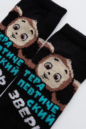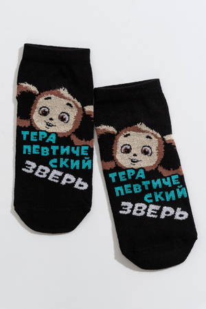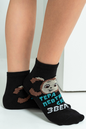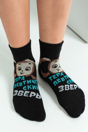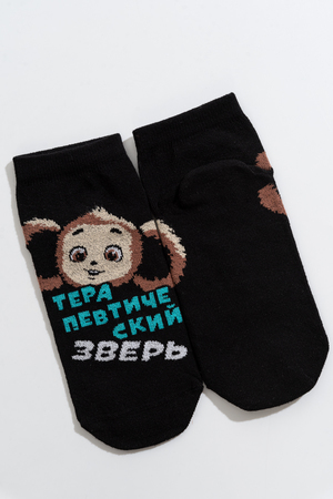Одна пара детских носков с изображением Чебурашки и надписью "Терапевтический зверь"