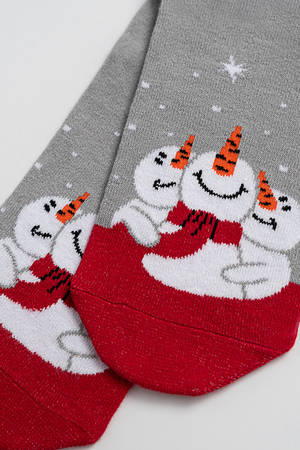 Комплект женских носков. В комплекте 1 пара однотонных носков, 1 пара носков с изображением снеговиков.