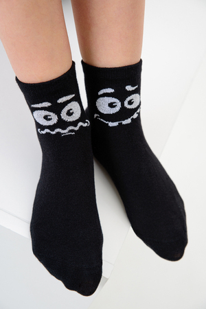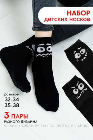 Детские носки с забавными рожицами на паголенке. Комплект 3 пары носков, на каждом свое изображение.