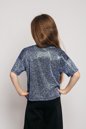 Футболка укороченная для девочки, выполненная из глиттера добавит индивидуальности любому образу и выделит среди других! Свободный крой футболки для девочек и спущенная линия плеча - трендовая модель топа футболки в гардеробе юной модницы. Укороченная футболка органично впишется в повседневные, праздничные и образы для фотосессий. Широкая размерная сетка модной одежды рассчитана для детей от пяти лет, а также подойдёт и подросткам. Универсальная форма футболки для худеньких, средних и плотных деток всегда выгодно подчеркнет достоинства и скроет недостатки. При соблюдении условий эксплуатации и ухода (бережная стирка при t не более 30C), срок службы изделия не ограничен, гипоаллергенный материал подойдет людям с чувствительной кожей. Российский бренд детской одежды сочетает в своих коллекциях городской образ с творческим подходом. В нашем магазине представлен широкий выбор одежды для девочек и мальчиков на любой сезон! Добавьте Lets Go в любимые бренды, чтоб первыми узнавать о поступлении новинок и скидок! Приятных Вам покупок!
