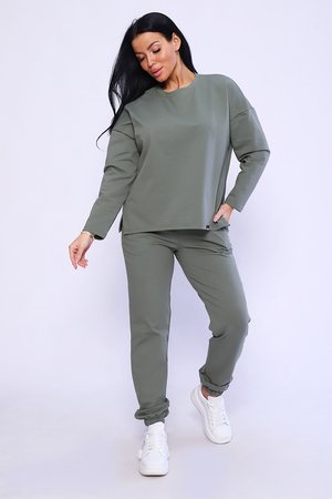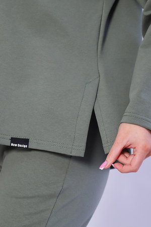 Костюм двойка выполнен из мягкого футера с лайкрой, туника с длинным рукавом, с декоративными разрезами на полочке и брючки с внутренним карманом с подгибкой внизу на резинку. Комфортное решение на каждый день.