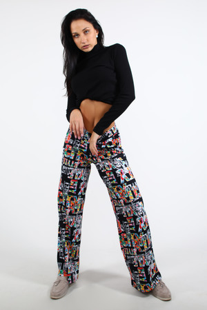 Брюки женские широкие, свободного покроя с поясом 4см. Данная модель выполнена из эластичного трикотажного полотна кулирка. На поясе присутствуют три декоративные строчки. Отлично подходят для прогулок и повседневной носки.
