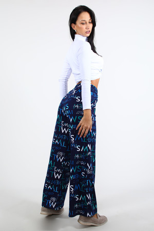 Брюки женские широкие, свободного покроя с поясом 4см. Данная модель выполнена из эластичного трикотажного полотна кулирка. На поясе присутствуют три декоративные строчки. Отлично подходят для прогулок и повседневной носки.