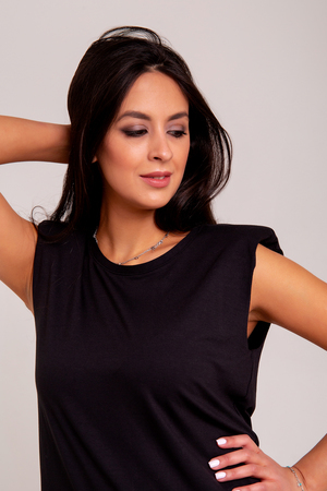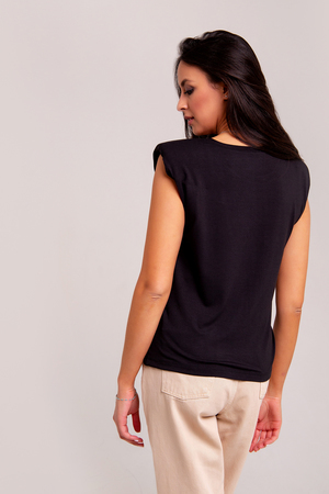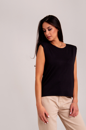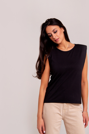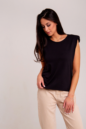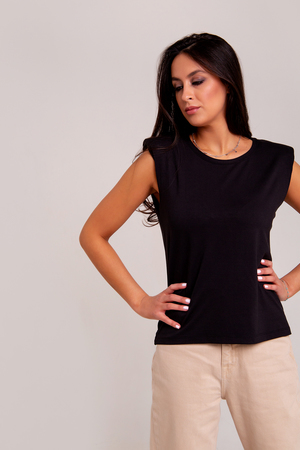 Стильная базовая футболка из приятного к телу трикотажа. Модель лаконичного дизайна, что делает её универсальной в использовании. Футболка шикарно составит комплект как с шортами для встречи тёплых летних дней, так и с узкими джинсами - скинни - для удобного, но стильного повседневного образа. Изделие без рукавов, дополнено "плечиками". Вырез горловины округлый. Состав ткани: 100% вискоза. Длина изделия 68 см. Рост модели на фото 173 см.