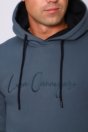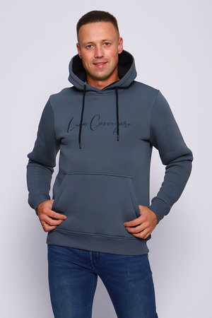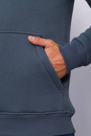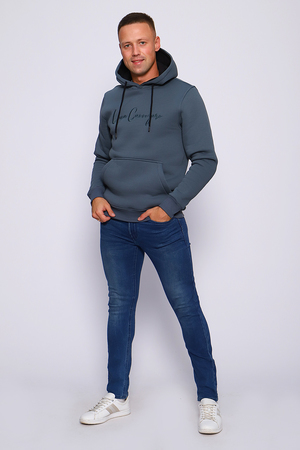 Классическая мужская толстовка изготовлена из футера трехнитки с начесом. Ткань качественная: не линяет, не закатывается. Изделие с капюшоном и карманом-кенгуру. Капюшон дополнен шнуром. На груди выполнена текстовая вышивка в цвет изделия. Толстовка не сковывает движения, индеально смотрится на любом типе фигуры.