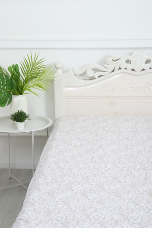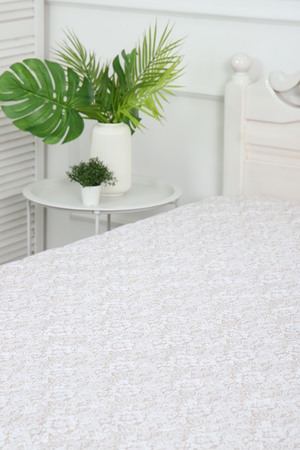 Ткань чехла белого или кремового цвета с жаккардовым рисунком.