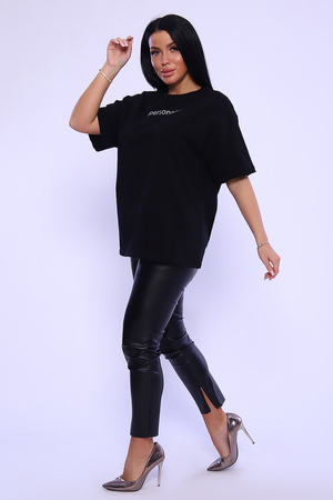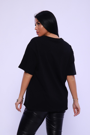 Базовая черная женская футболка оверсайз из 100% хлопка с печатью. Футболка свободного кроя, хорошо сочетается с джинсами, брюками, юбкой, как в заправленном виде, так и навыпуск. Легко создать спортивный или повседневный стиль. Плотность ткани 240гр/м2.